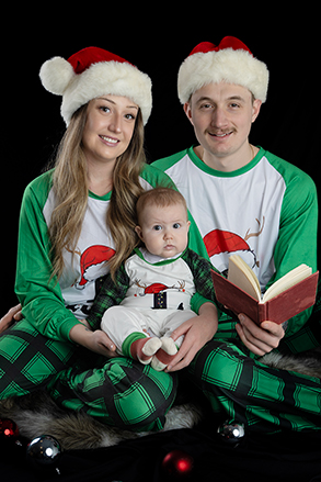 There is nothing quite as magical as a baby’s first Christmas, and this cozy photoshoot had all the festive feels! This sweet 6 month-old came in with her parents to celebrate the season, and yes…mom and dad were also rocking their Christmas pajamas. Matching jammies instantly set the tone for a session filled with laughter, cuddles, and unforgettable moments.